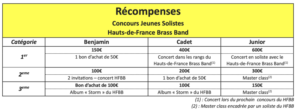 Le concours de jeunes solistes du Hauts de France Brass Band est ouvert aux instruments ci-dessous :